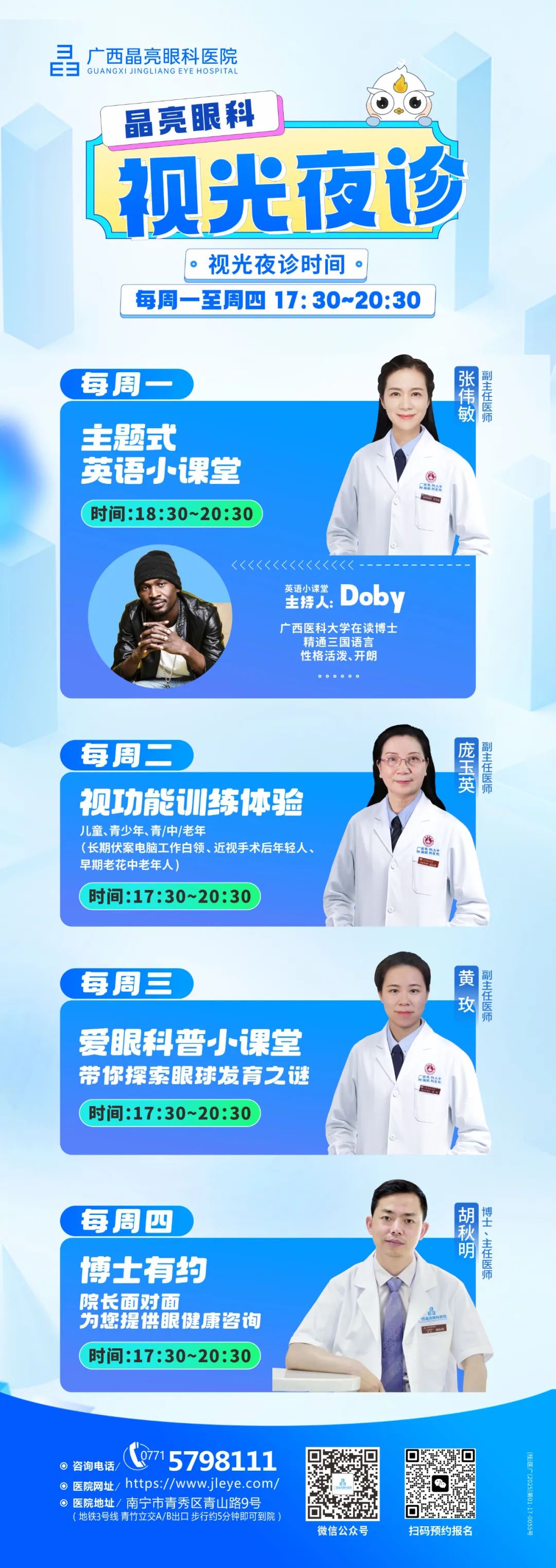 广西晶亮眼科医院积极响应国家关于儿童青少年近视防控号召,作为南宁市科普教育基地与广西交通台青少年教育实践研学基地。广西晶亮眼科医院一直把“青少年近视防控工作”作为医院的重点工作。深入推进科普教育“走出去+请进来”模式,持续深化我院与南宁市各中小学的合作共建,多次组织各种线上、线下科普活动,以眼健康科普基地为依托,以多元化科普教育活动为推动力,充分发挥我院的人才优势和资源优势,针对特定的人群深度普及近视防控知识,筑牢孩子视力健康防线。