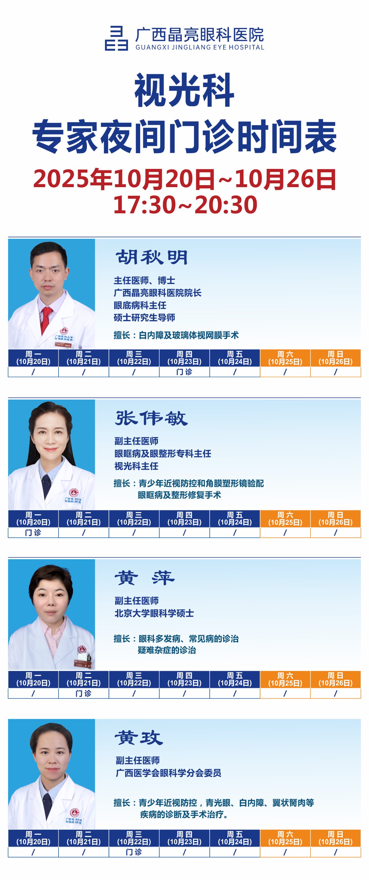 门诊时间:8:00—17:30 验光配镜:8:00—19:30