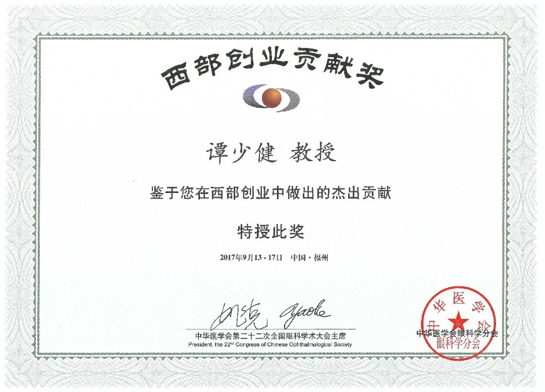 三十多年来,谭少健教授坚持行医与科教结合,以“晶状体病的基础及临床研究以及近视眼激光手术治疗”为主研方向,先后主持完成国家自然科学基金2项、广西自然科学基金以及厅局级课题等10余项,累累学术硕果,对推动广西眼科事业的进步起到重要作用。