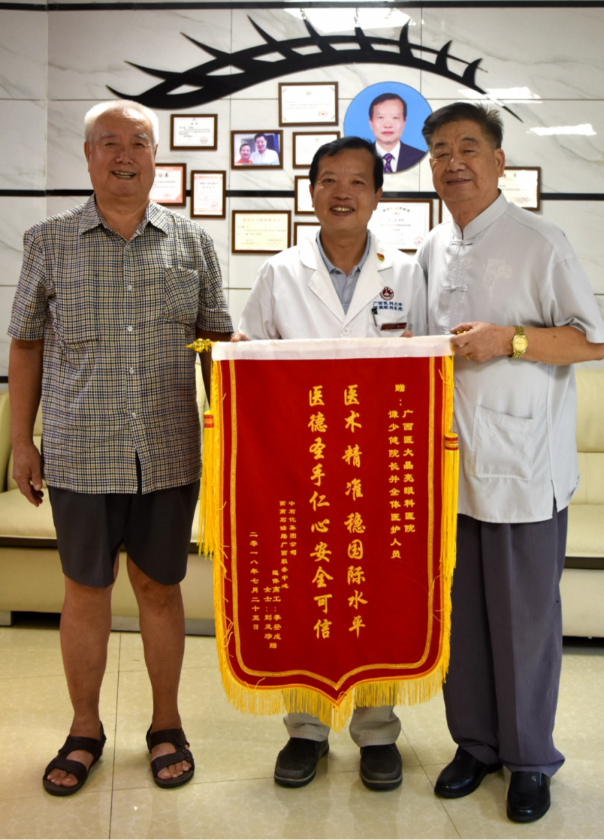 谭少健教授精于医术,诚于医德,与眼睛打了将近四十年交道,做过数万台手术,心里始终装着患者,向着光明。在谭少健教授的带领下,广西晶亮眼科医院的文化里也充满大爱,“不忘初心,奉献光明”的办院宗旨在他的身体力行中,春风化雨般地传递给了医院的每一位员工以及眼科界的每一位同仁。
